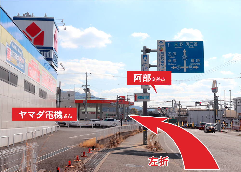 ヤマダ電機さんを左に見て、左折(名張、榛原方面)です。